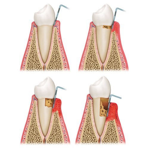 Ez már a fog gyökerét tartó szövetek gyulladása, melyet a szájüregben felszaporodott kórós baktériumok okoznak. A gyulladás következtében a fogat tartó szövetek visszahúzódnak, elsorvadnak és a fog meglazul. Kezeletlenül hagyva – súlyos esetben - a fogak akár maguktól kihullhatnak, de a meglazult fogak semmiképp sem alkalmasak későbbi fogpótlás alapjának.