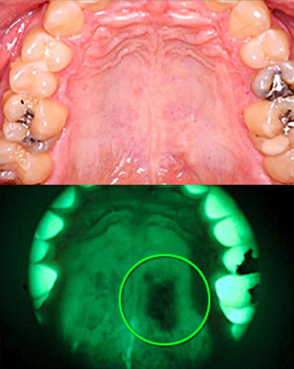 A VELscope rendszer biztonságos, látható kék fényt bocsát ki, amely gerjeszti a nyálkahártya szöveteit és fluoreszkál. A fogorvos megvizsgálhatja a lágy szöveteket és azonosíthatja a gyanús elváltozásokat. Az egészséges szövetek jellemzően élénkzöld fényként jelennek meg, míg a gyanús elváltozások a fluoreszcencia hiányát okozzák, és sötét színűnek tűnnek.